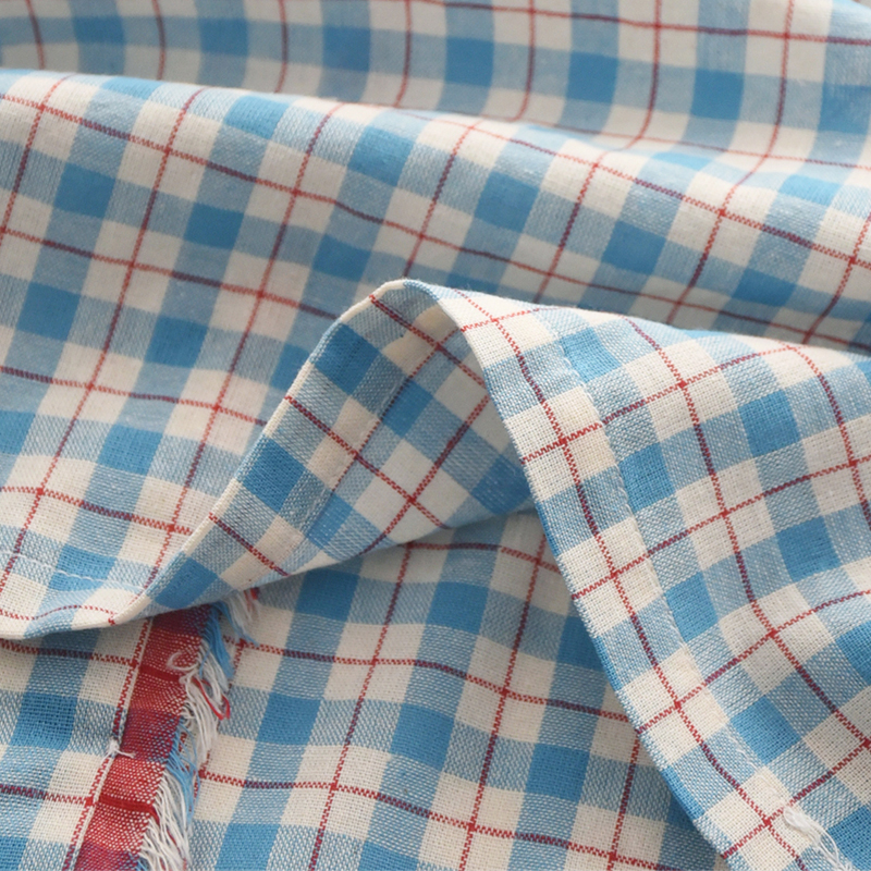 女纯棉棉布清爽格纹春夏长袖睡衣