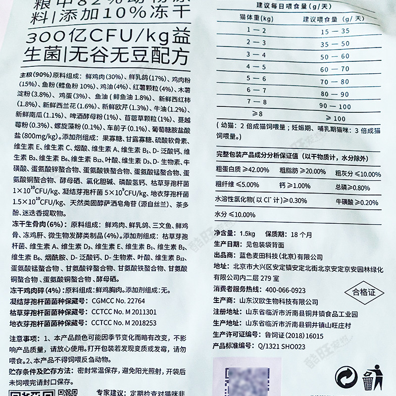 蓝氏乳鸽猫粮成猫猎鸟幼猫全阶段猫粮1.5kg生骨肉高蛋白夹心通用