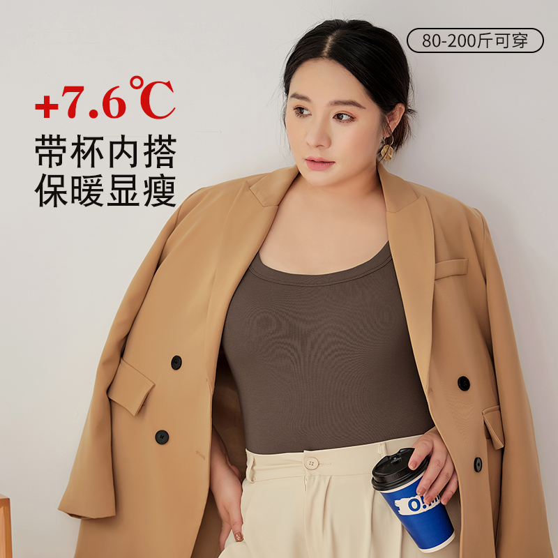 猫人大码胖mm保暖背心女带胸垫2025秋冬新款加肥加大无痕发热秋衣