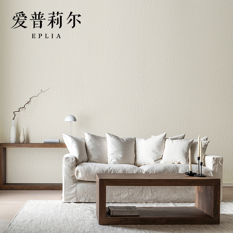 亚麻布纹无纺布素色奶黄色米色壁纸奶油风北欧卧室客厅背景墙墙纸