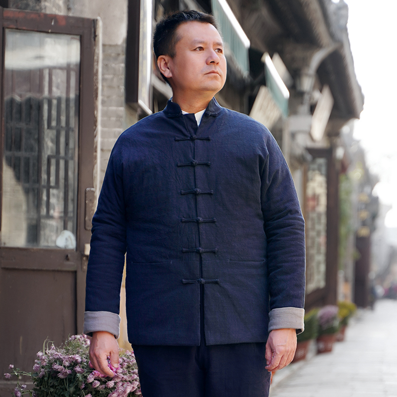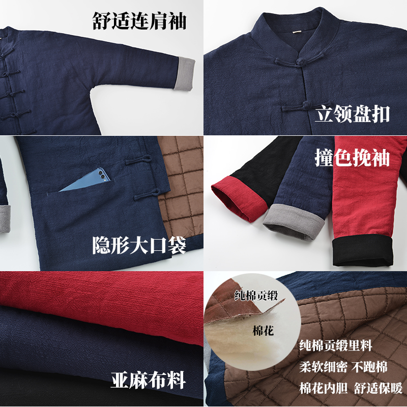 中国风亚麻唐装男棉袄中式纯棉花加厚棉衣冬季复古保暖外套可水洗