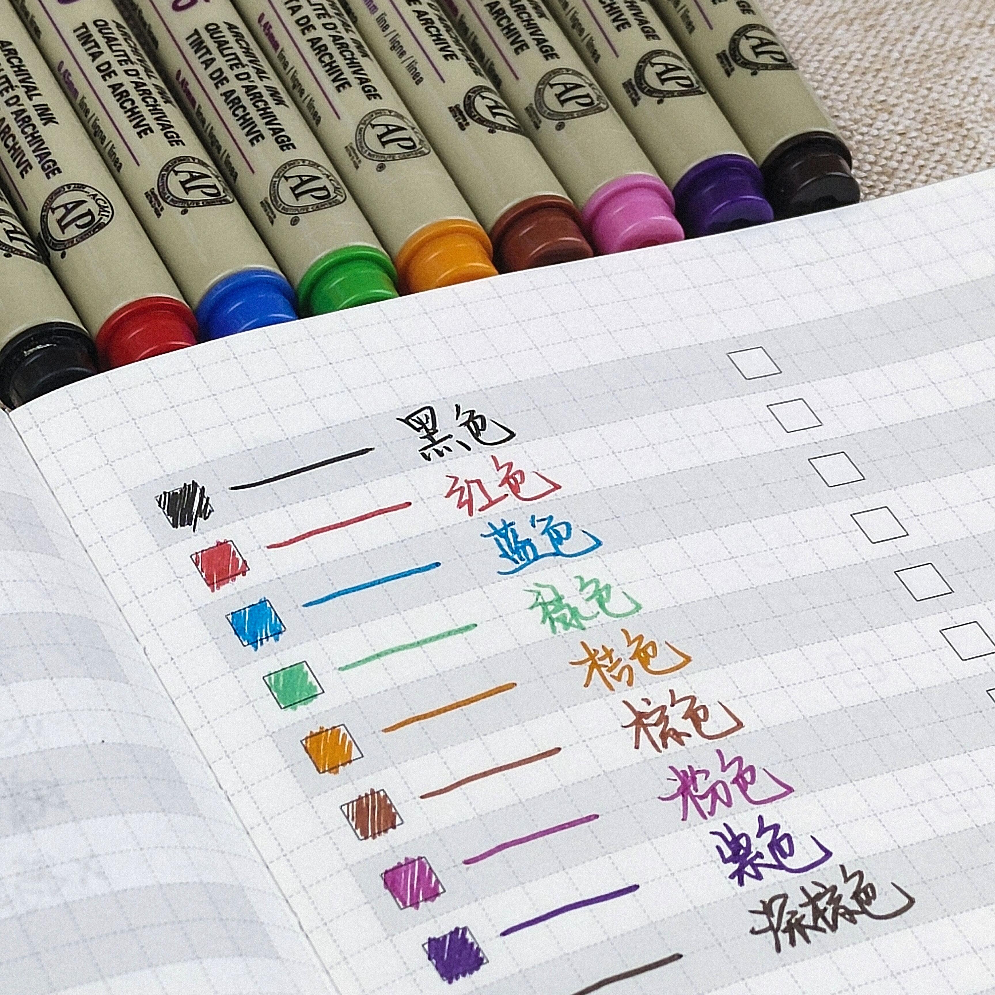 樱花彩色针管笔防水勾线笔手账笔做笔记绘画柔绘笔动漫手绘涂色笔