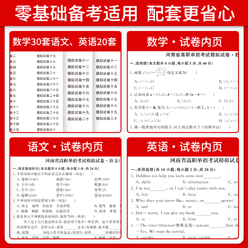 备考2026年河南省高职单招复习资料语文数学英语模拟试卷职业技能测试题库河南考试辅导教材真题中职生对口升学分类职测