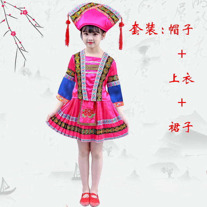 儿童布依族服装女贵州少数民族竹竿舞演出服男女童布依族舞蹈服饰