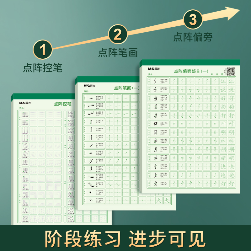 晨光点阵控笔训练字帖楷书笔画笔顺偏旁部首字帖儿童幼儿园练字本初学者入门套装钢笔专用一年级小学生幼小衔接硬笔书法