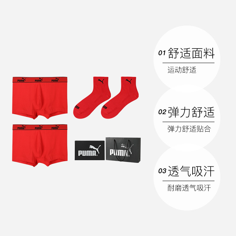 【自营】PUMA彪马男士内裤运动休闲舒适透气袜子平角裤礼盒装