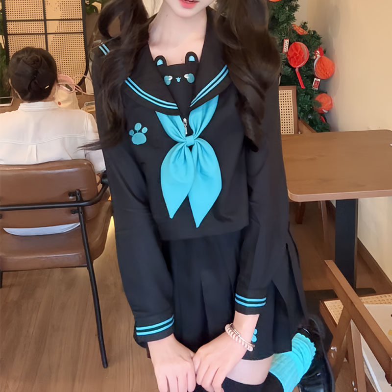 十一封信jk小熊来信初音黑色原创水手服女日系短袖制服正版套装