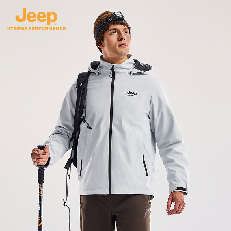 Jeep吉普户外冲锋衣男士防风防雨抓绒透气耐磨徒步登山服宽松外套