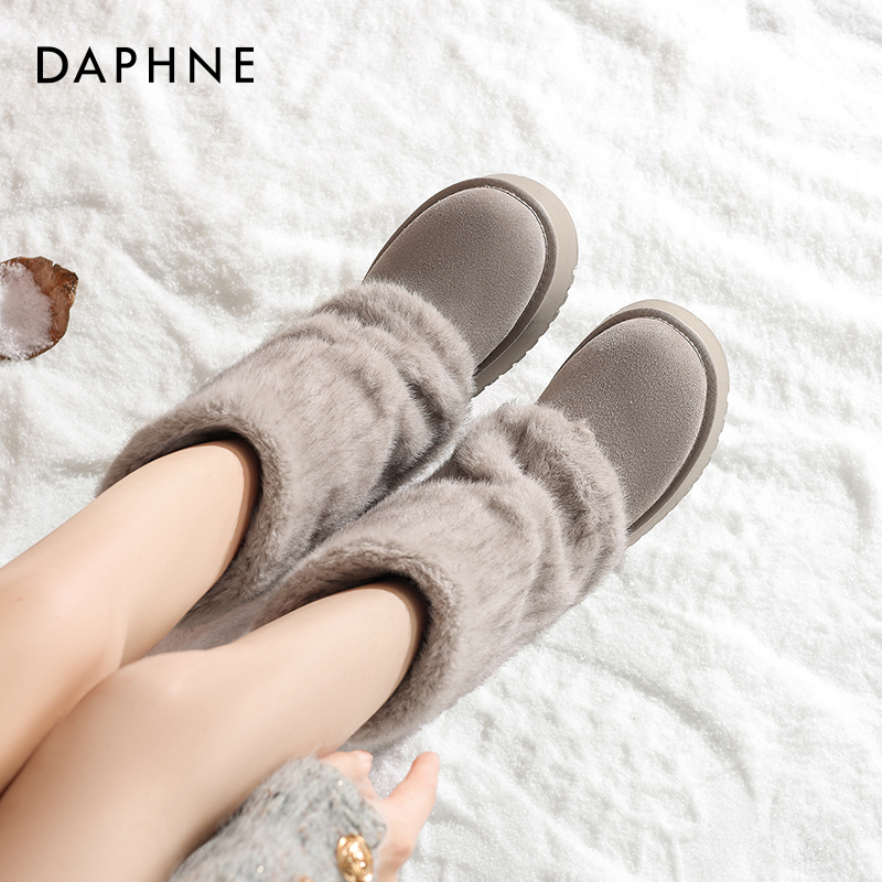 达芙妮长筒雪地靴女灰色2025冬季新款加厚高筒靴子厚底毛毛棉鞋子
