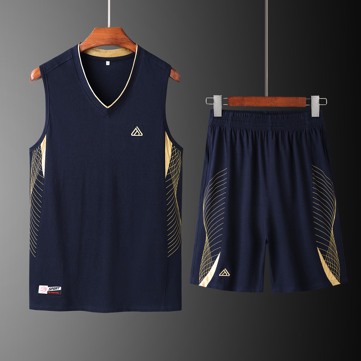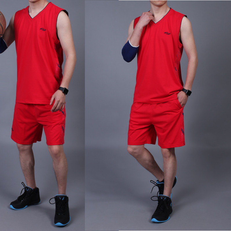 100%棉篮球服套装带拉链口袋健身服宽松纯棉跑步服吸汗透气球衣男