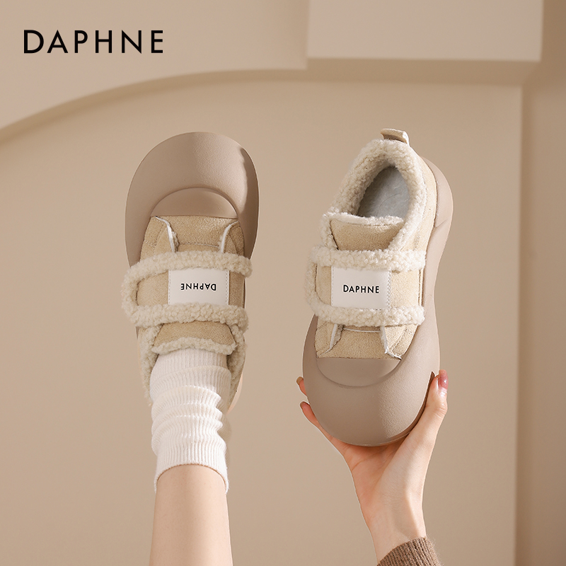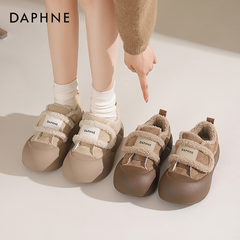 达芙妮加绒棉鞋厚底保暖面包鞋女