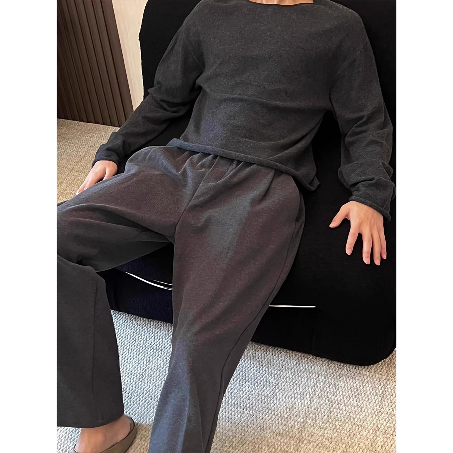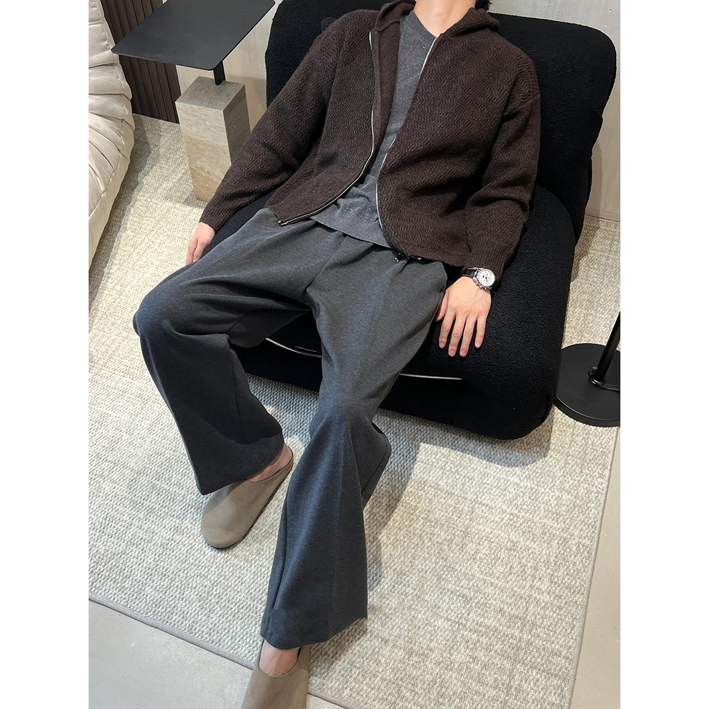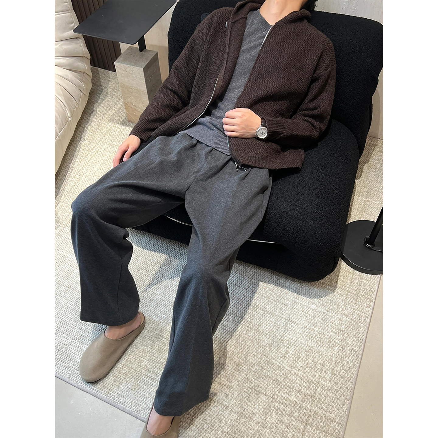 深灰色休闲西裤男秋冬季加厚垂感直筒修身毛呢裤子美式阔腿西装裤