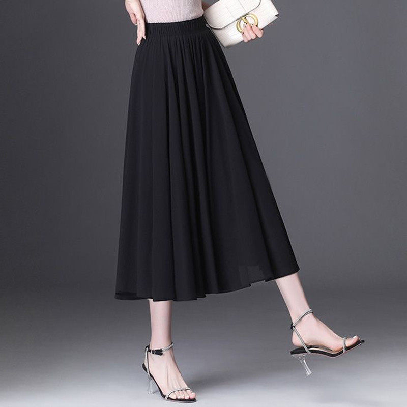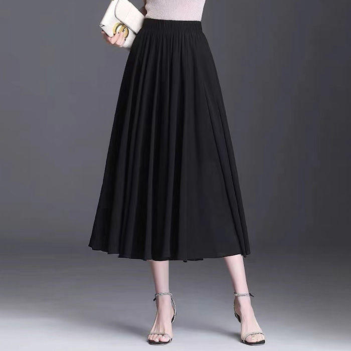 中长款雪纺半身裙女2026春季高腰显瘦a字裙大码胖mm松紧大摆伞裙