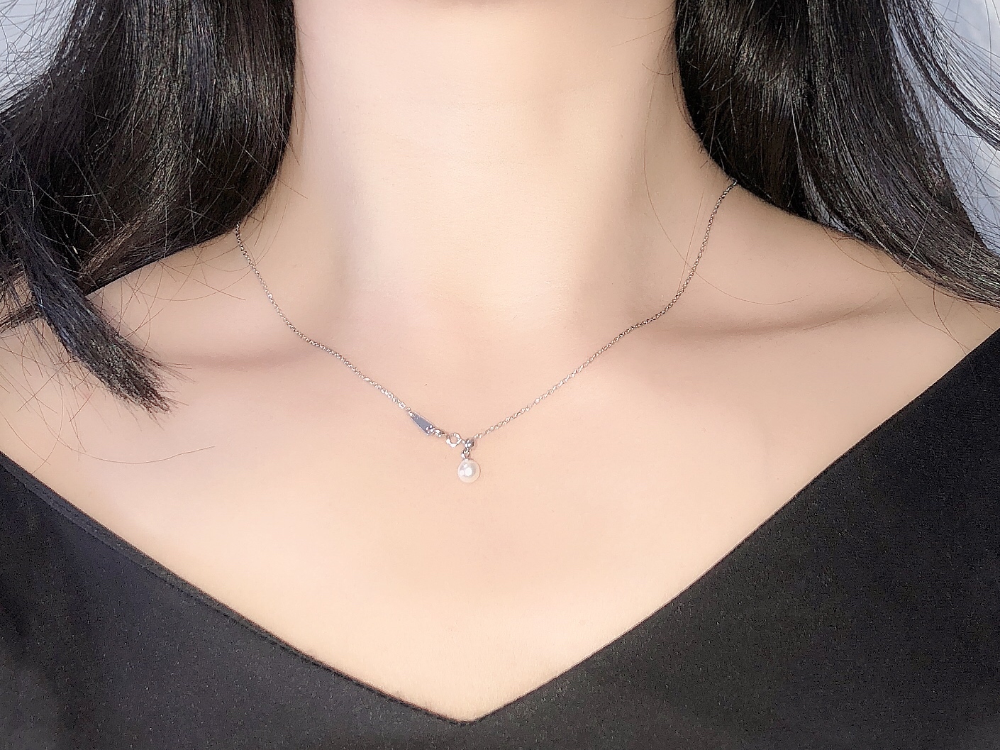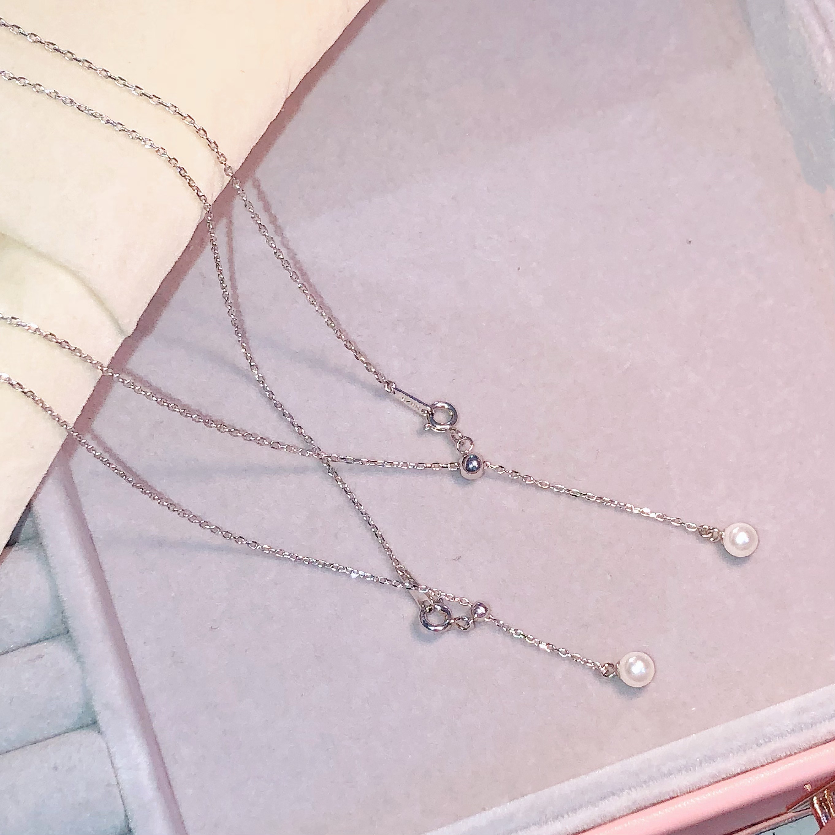 925纯银镀白金 人造珍珠项链女轻奢小众设计 锁骨链 可调节 Y字链