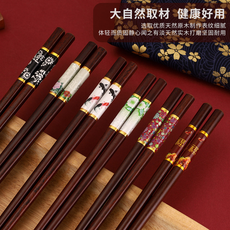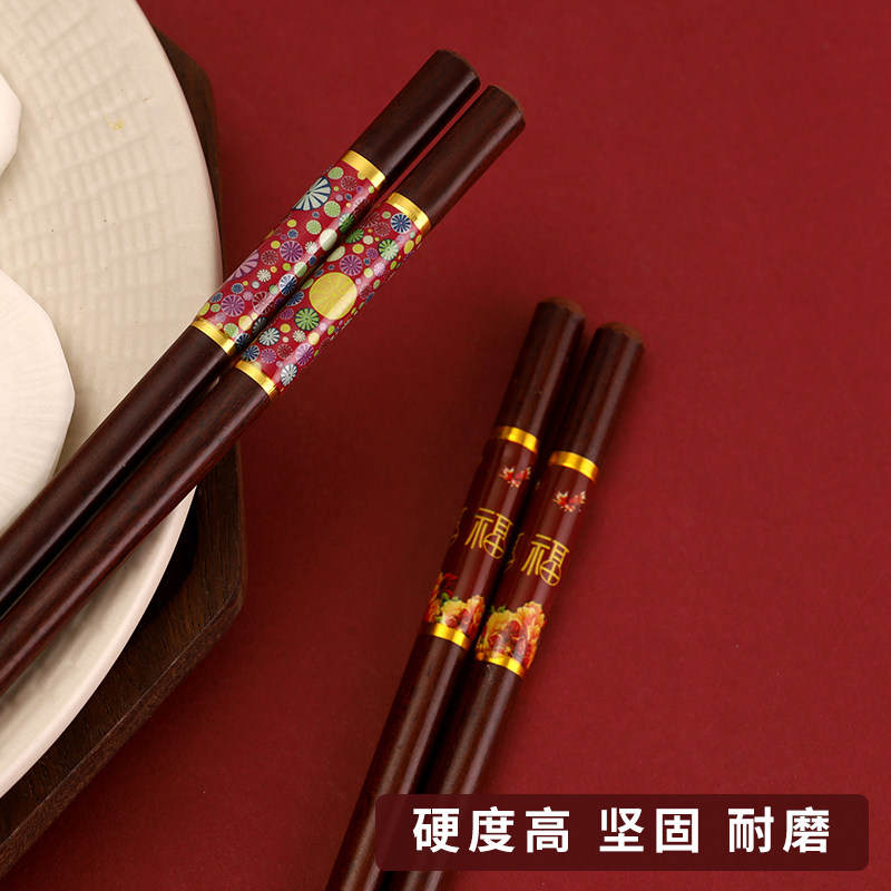 中式红檀木 筷子木质家用一人一筷高档实木防霉方形防滑木头快子
