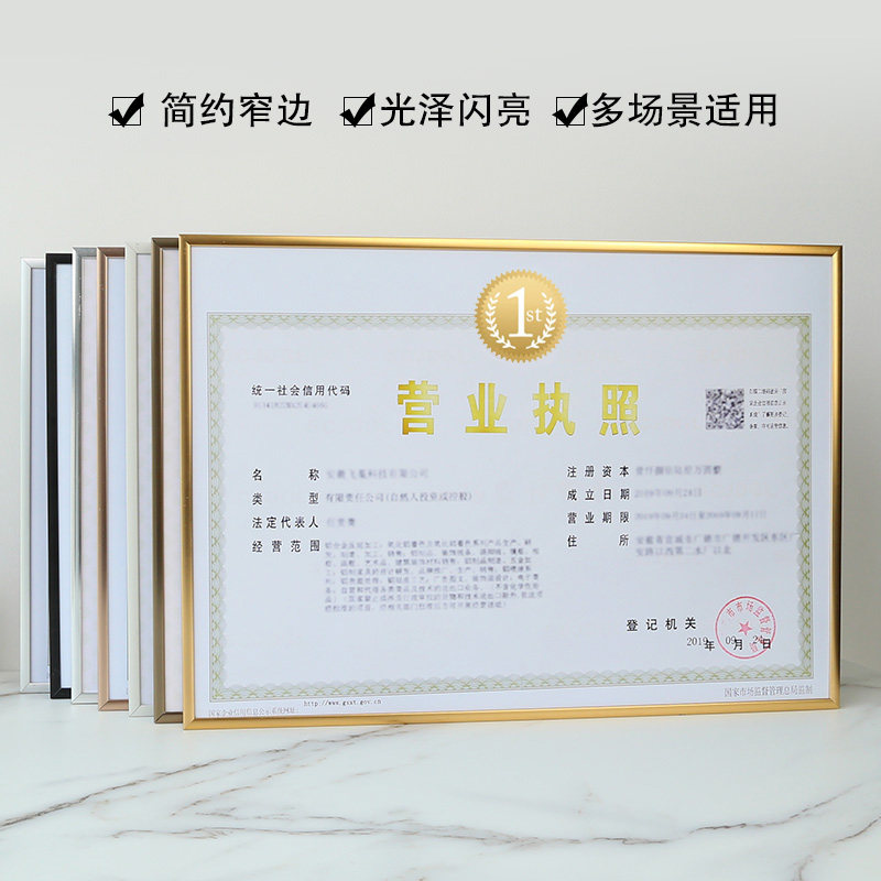 A3营业执照框架壁挂铝合金a4展示相框挂墙奖状收纳食品卫生证书框