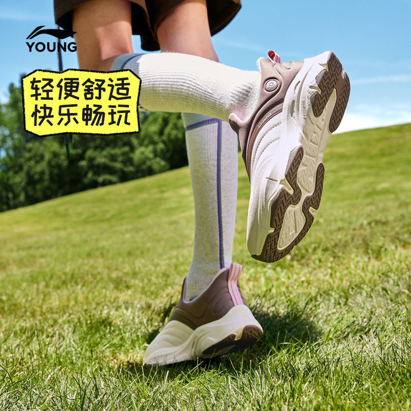李宁小女孩一脚蹬运动鞋轻便软底秋冬款女童鞋中大童青少年跑步鞋