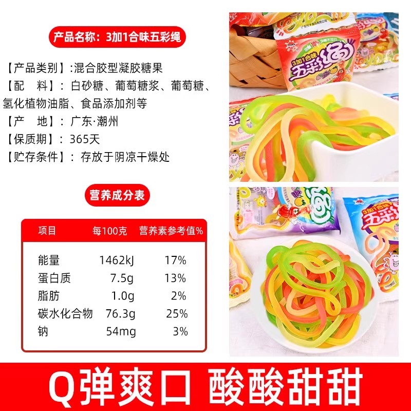 优卡五彩绳果汁软糖糖果8090后怀旧儿时吃货小时候零食休闲食品