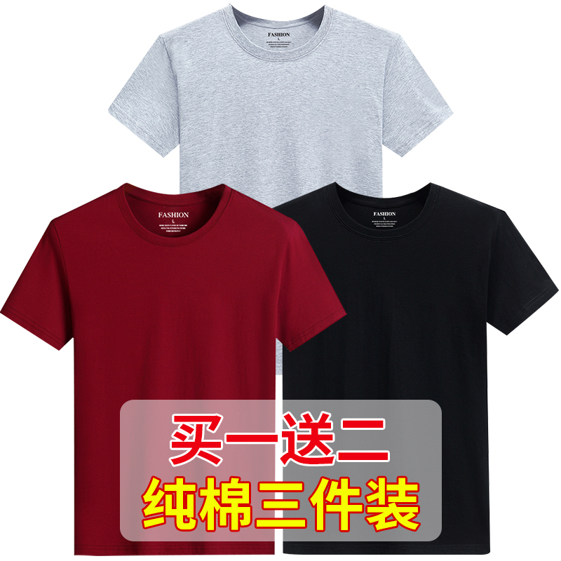 短袖t恤男韩版圆领纯色圆领大码青年T恤夏季纯棉男装半袖打底衫潮
