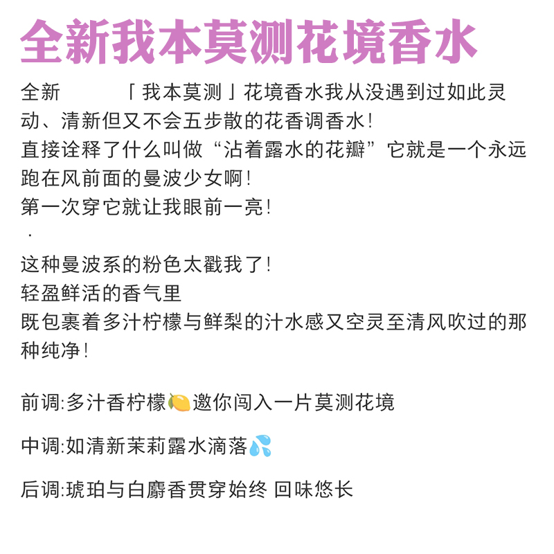 轻盈的空气感正品我本莫测花境香水小样大牌分装约会女士持久小众