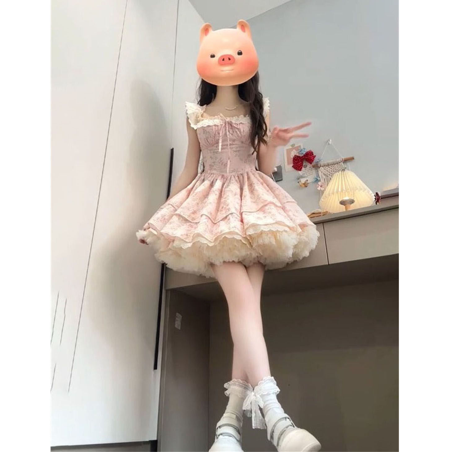 小飞袖碎花公主短裙收腰连衣裙