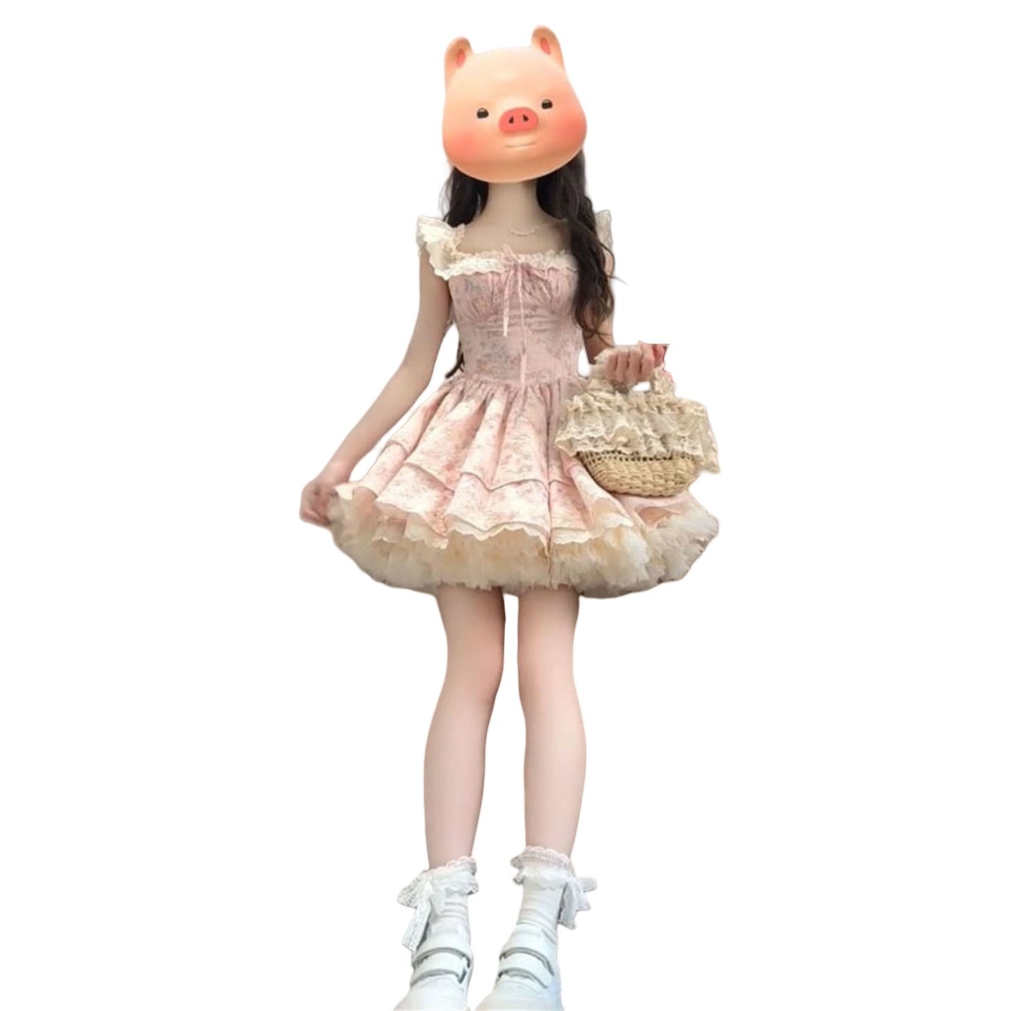 韩版学院风小飞袖碎花公主短裙女学生夏季小个子方口领收腰连衣裙