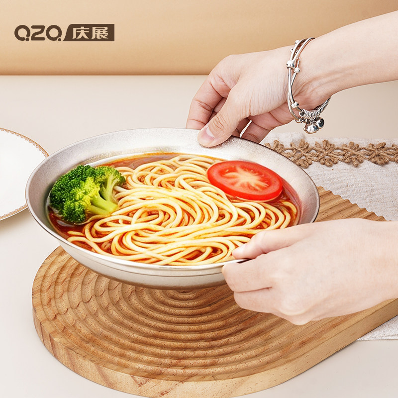 庆展 99.6%纯 钛 盘子 冰花菜盘餐具 家用碗碟平盘 圆盘饭盘 实用