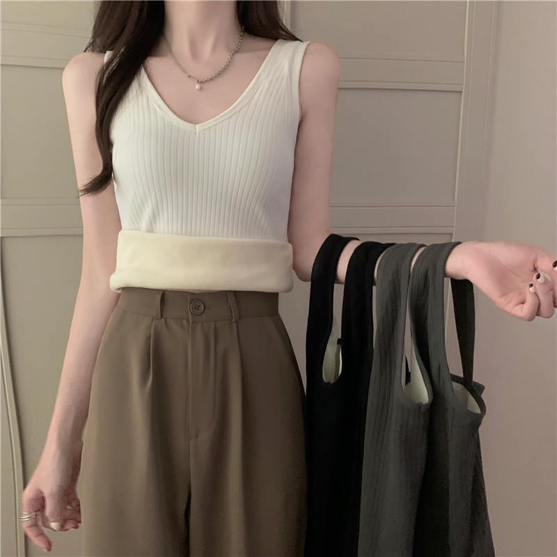 保暖吊带小背心女装秋冬季内搭加绒加厚针织打底衫早秋衣无袖上衣
