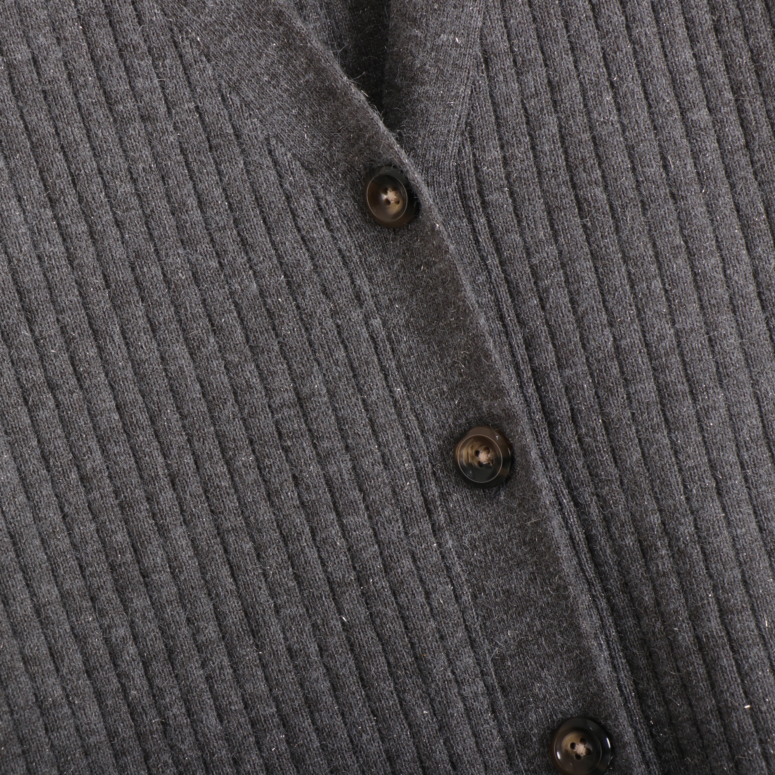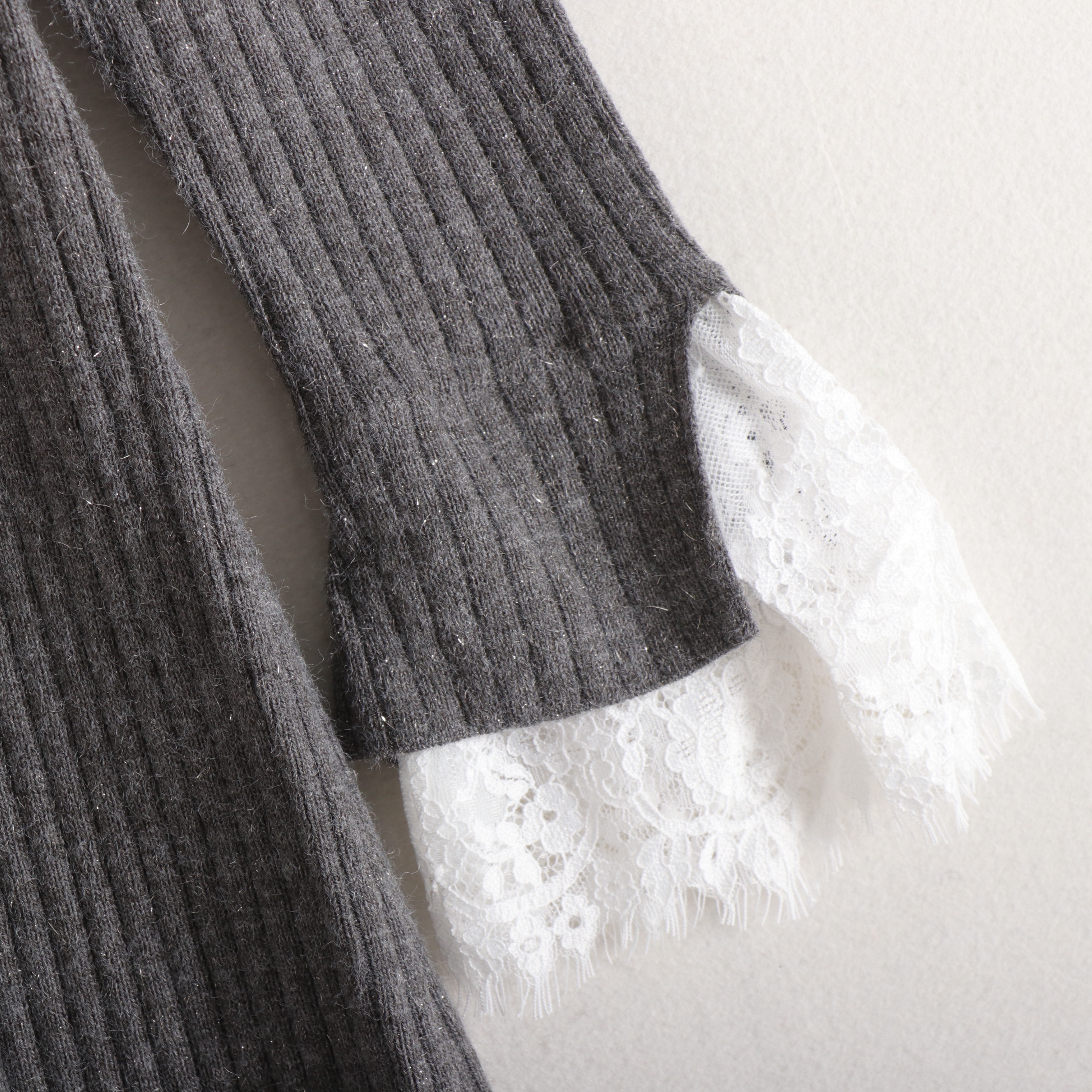 加系列V领单排扣蕾丝拼接荷叶袖紧身针织连衣裙长裙女25冬装新款