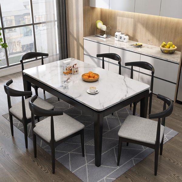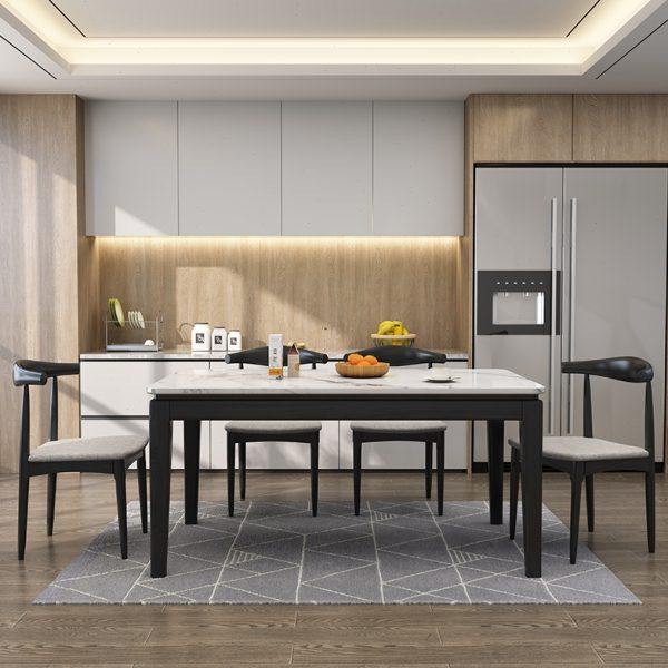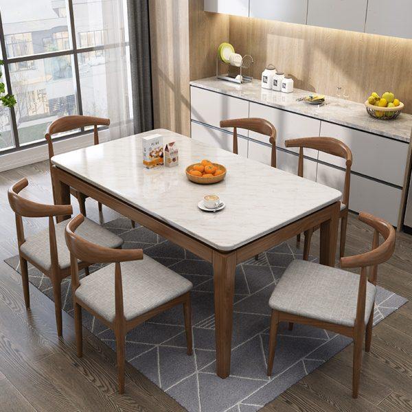全实木北欧火烧石餐桌椅组合现代简约家用小户型长方形大理石餐桌