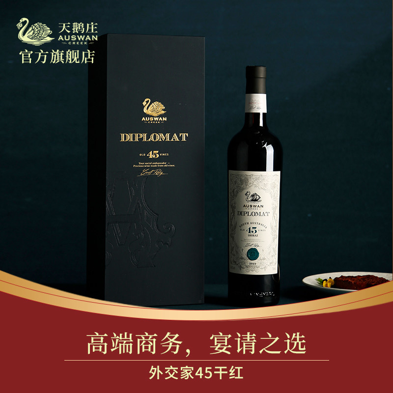 天鹅庄外交家45年老藤西拉干红葡萄酒澳洲原瓶进口红酒整箱礼盒