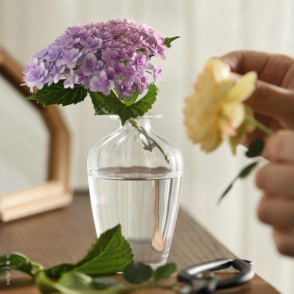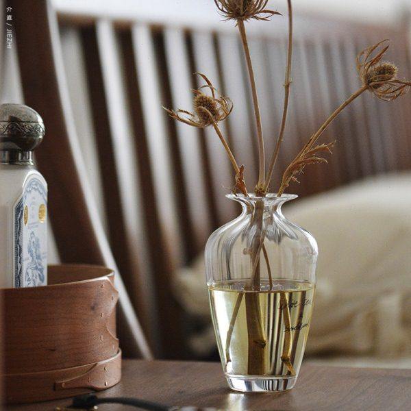 介直 日用之美中式柳叶瓶玻璃透明小花瓶 扩香薰瓶子手工玻璃芥埴