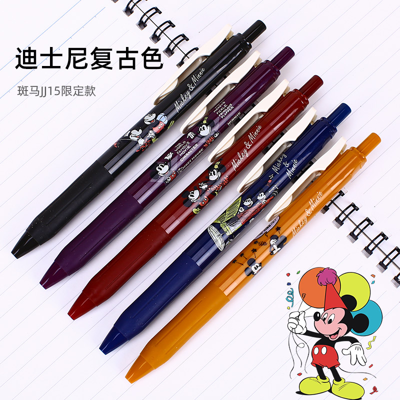 日本斑马按动中性笔ZEBRA迪士尼复古款限定彩色水笔学生手帐彩笔