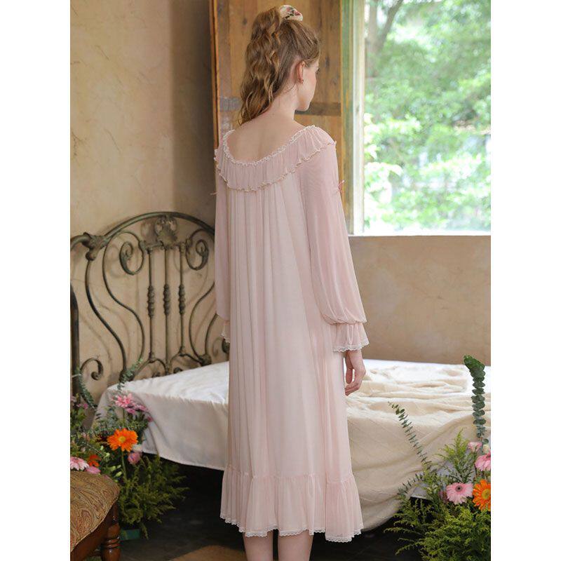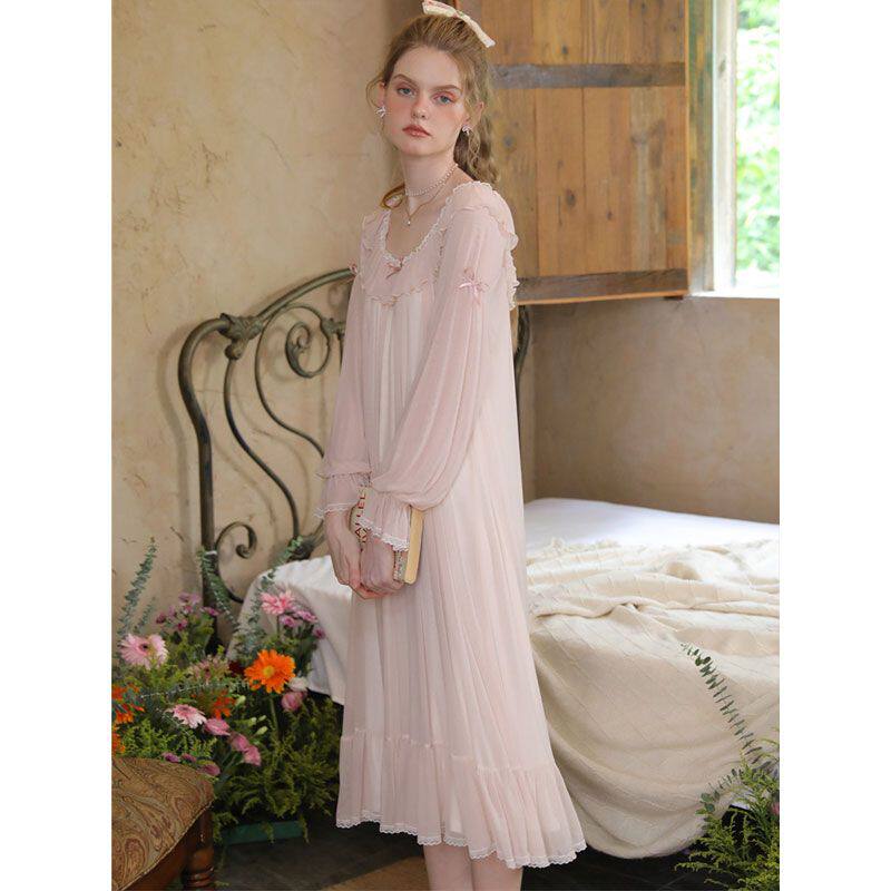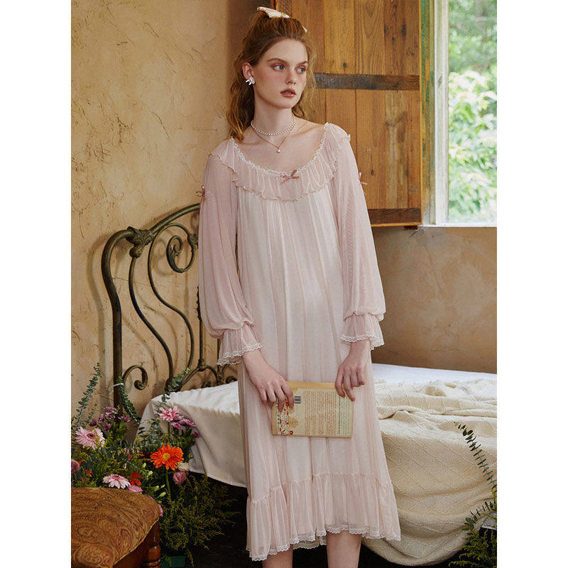 宫廷风睡裙女款春秋季长袖长款法式高级感公主风蕾丝睡衣性感长裙