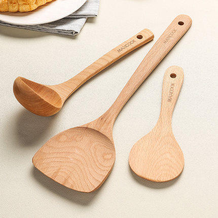 美厨家用锅铲木质铲勺耐高温木铲木勺饭勺汤勺炒茶铲子不粘锅专用