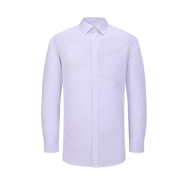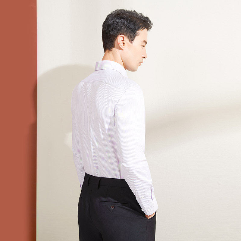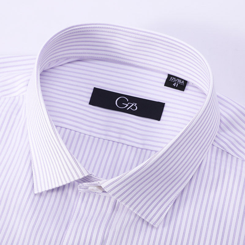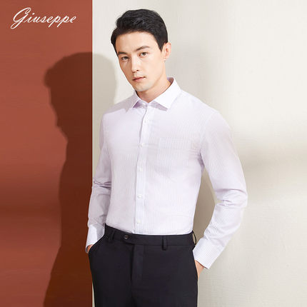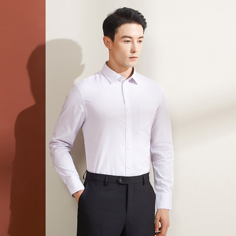 乔治白秋季男士长袖条纹衬衫方领直筒纯棉口袋衬衣商务职场上衣