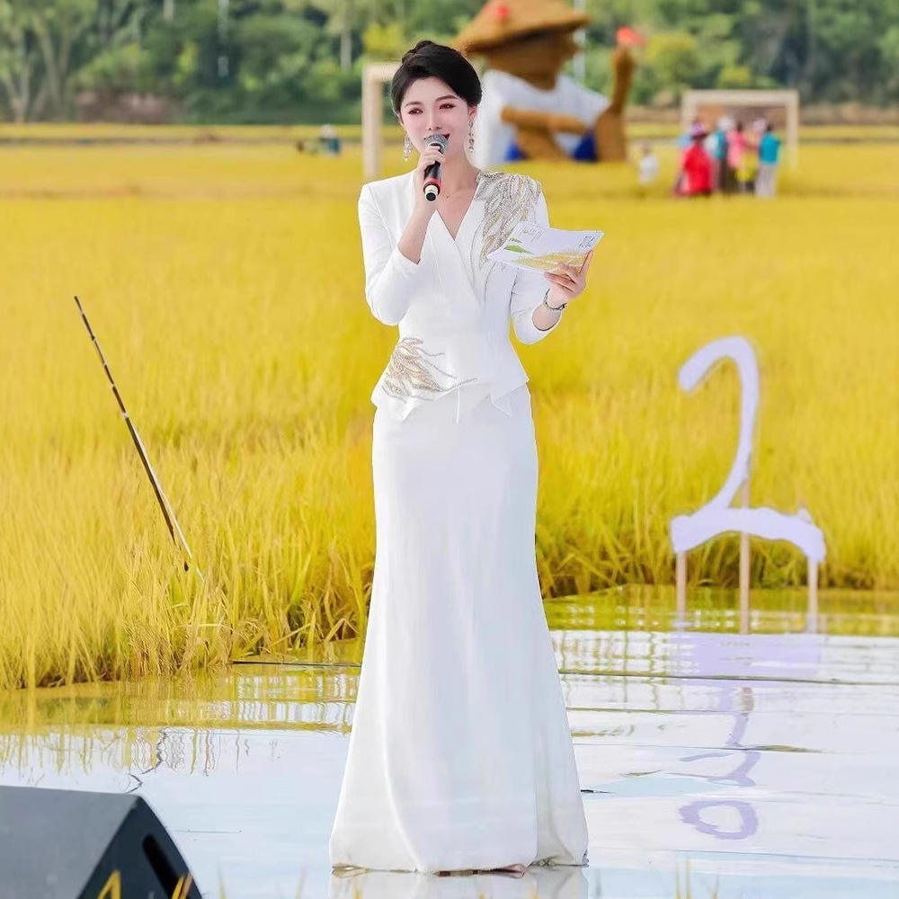 高端主持人晚礼服轻奢气质宴会合唱演出服钢琴演奏美声艺考连衣裙