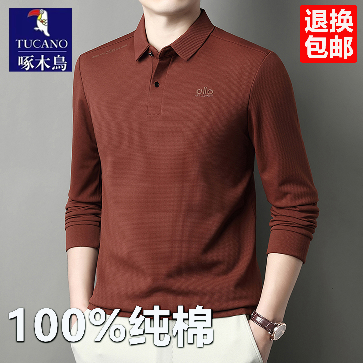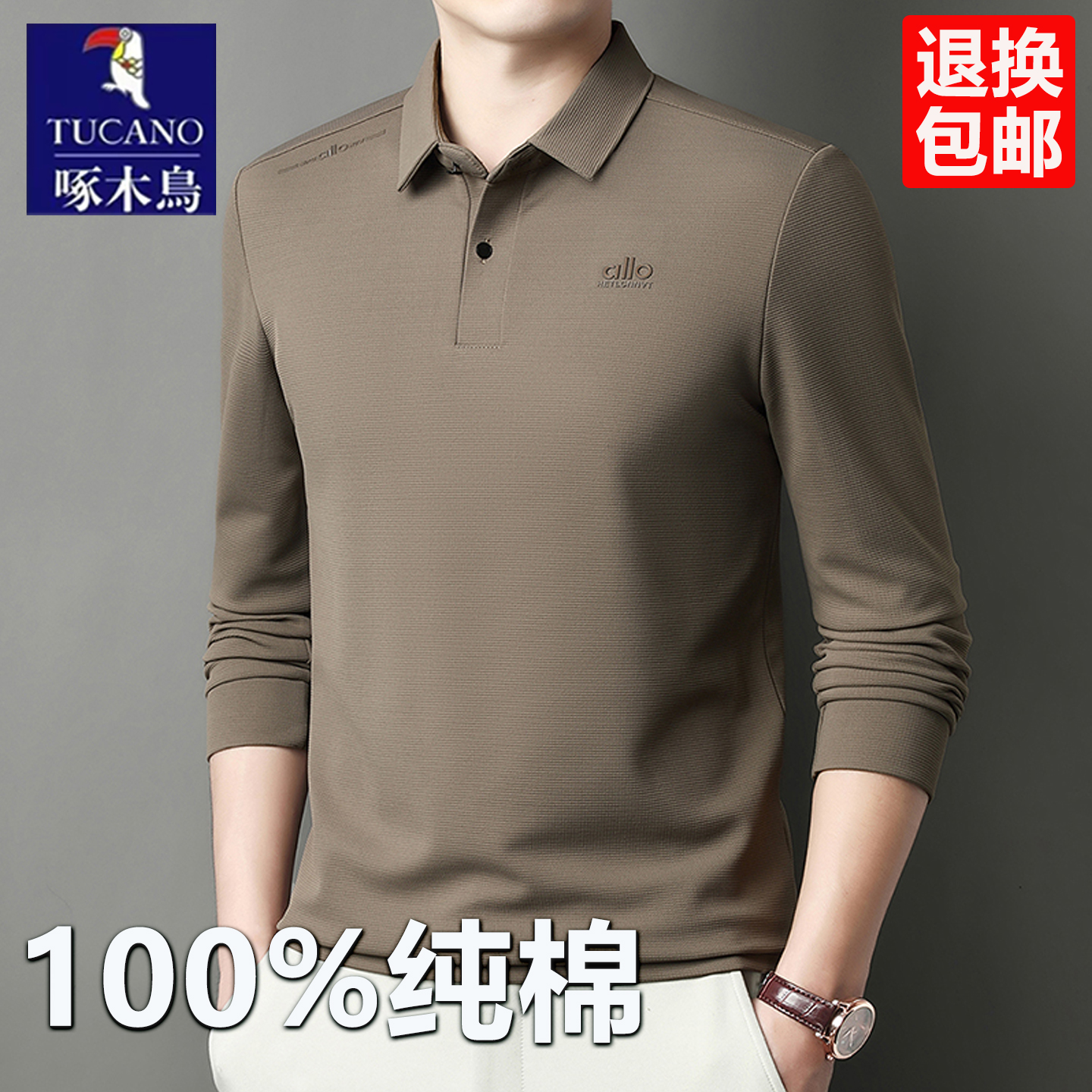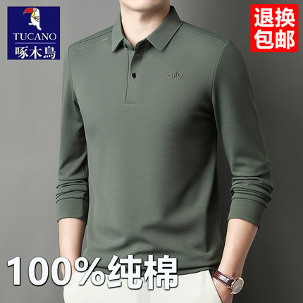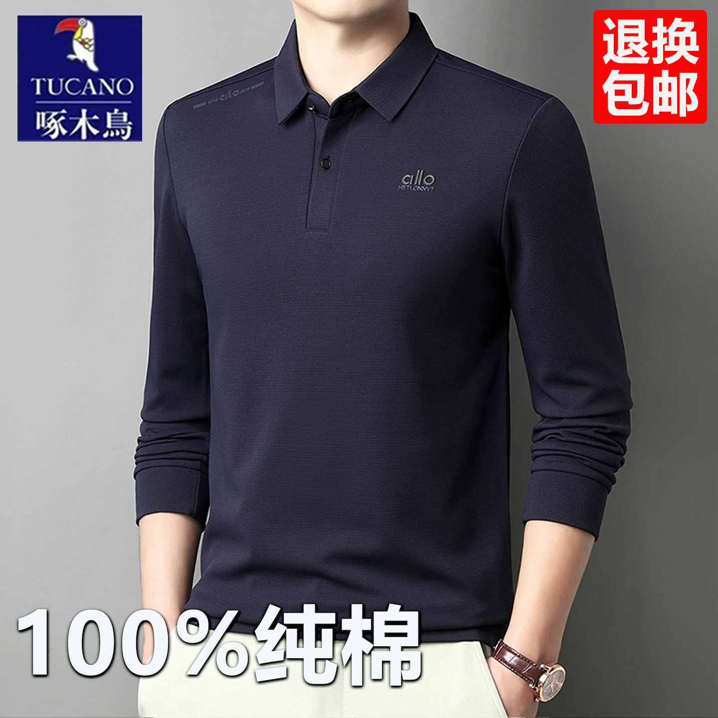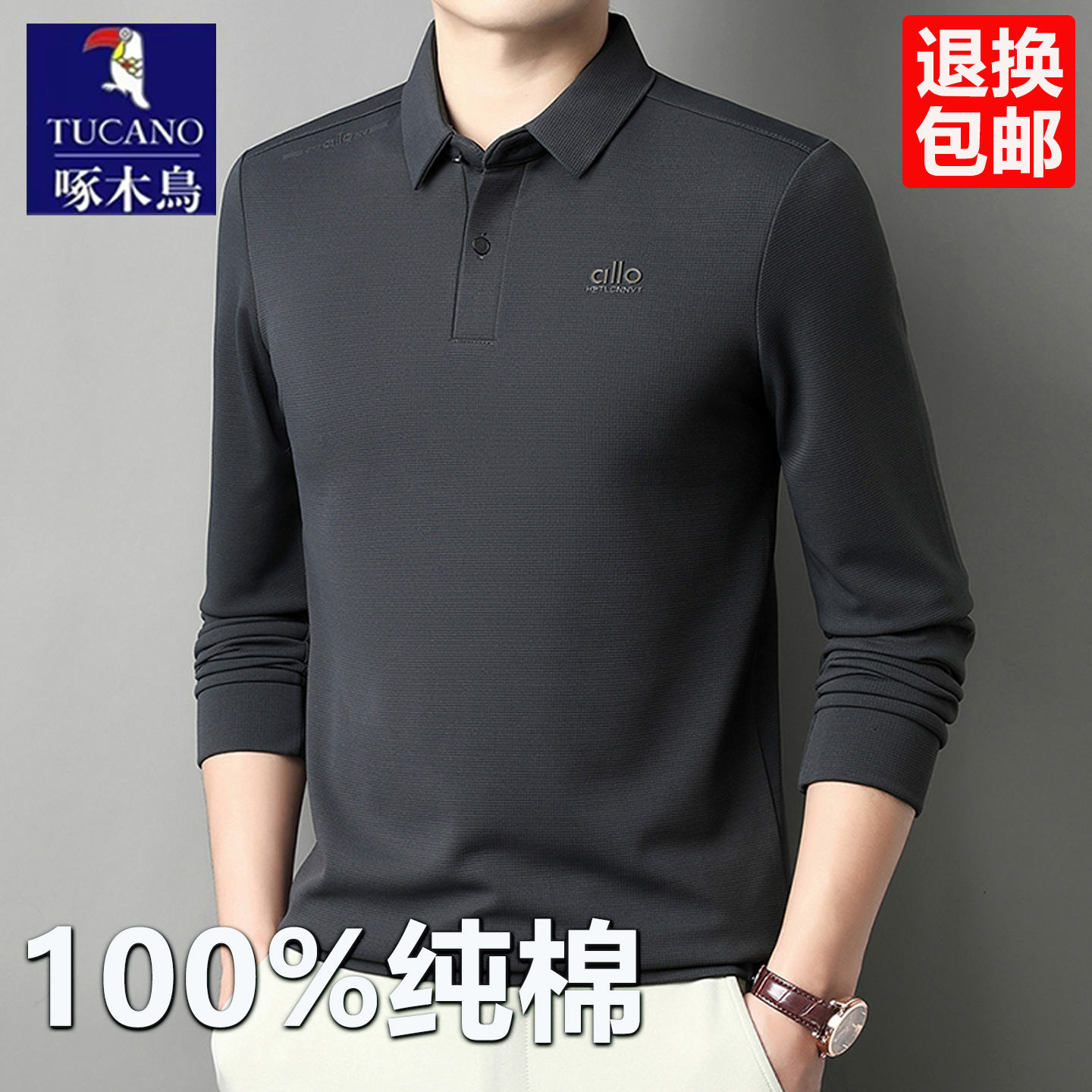 啄木鸟男士长袖t恤高端商务休闲卫衣polo衫宽松上衣中老年打底衫T
