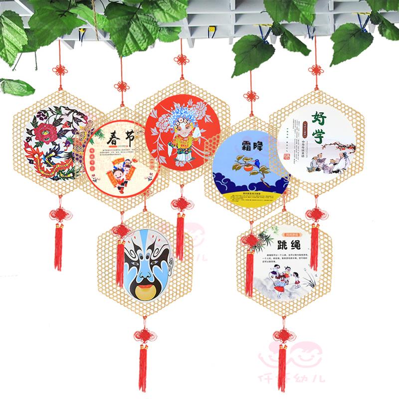 幼儿园挂饰教室走廊空中吊饰区角环创装饰布置创意手工竹编竹网