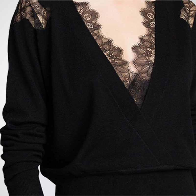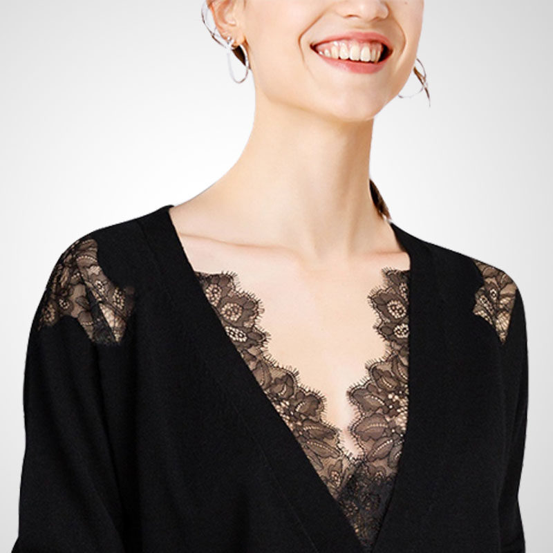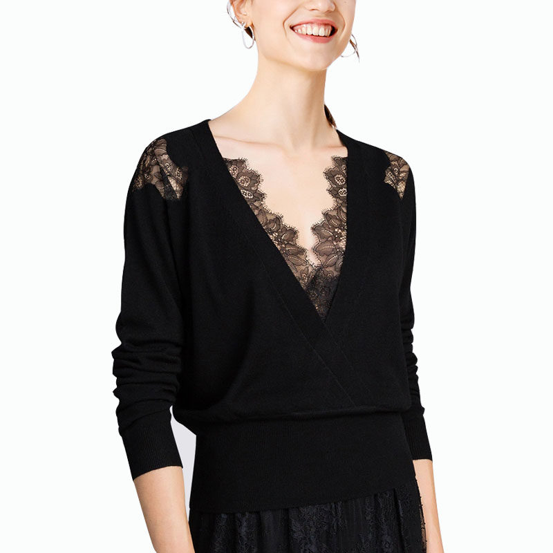 黑色蕾丝羊毛优雅百搭针织衫薄款