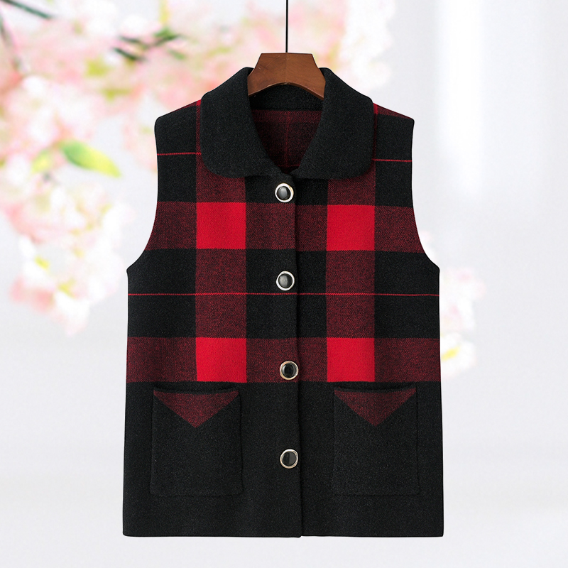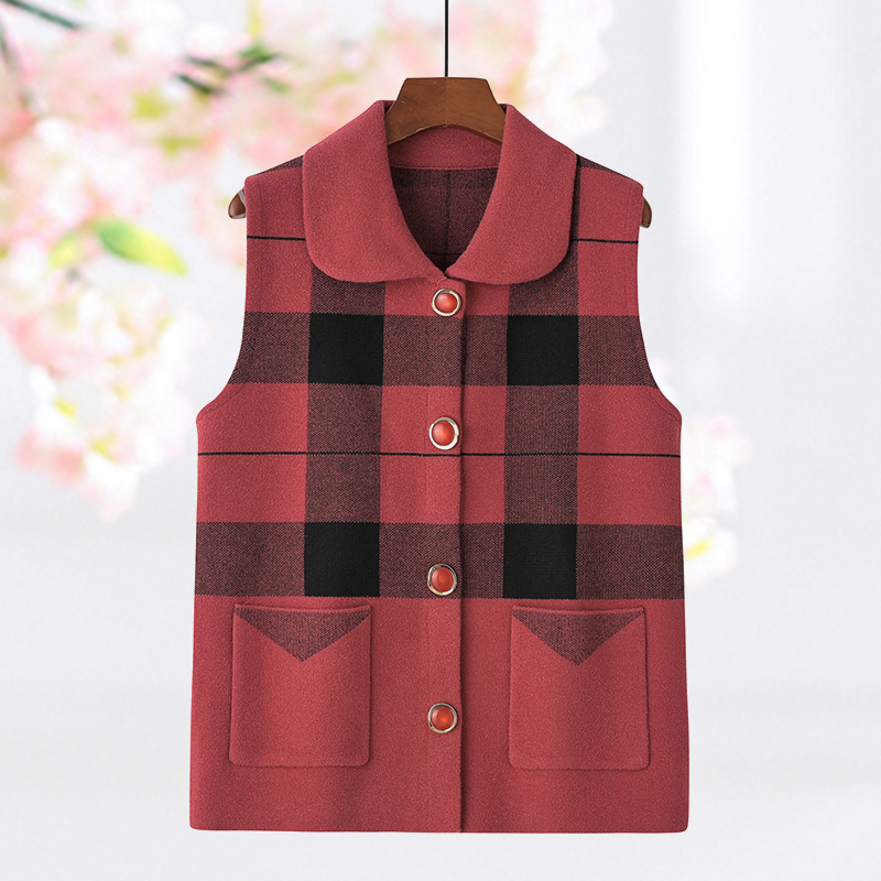 中老年妈妈装秋冬格子毛衣马甲奶奶宽松洋气针织开衫马夹老人衣服