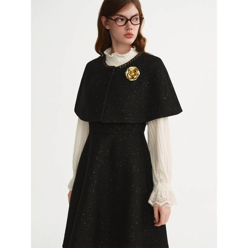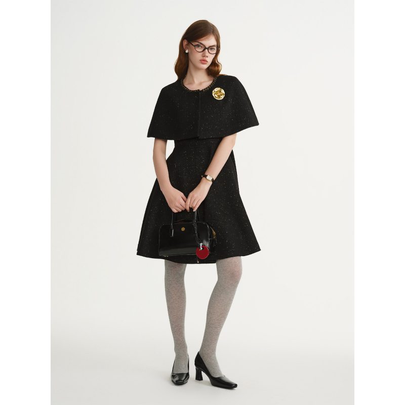 独束大码女装【耀眼星河】宴会连衣裙斗篷背心小黑裙两件套装裙子