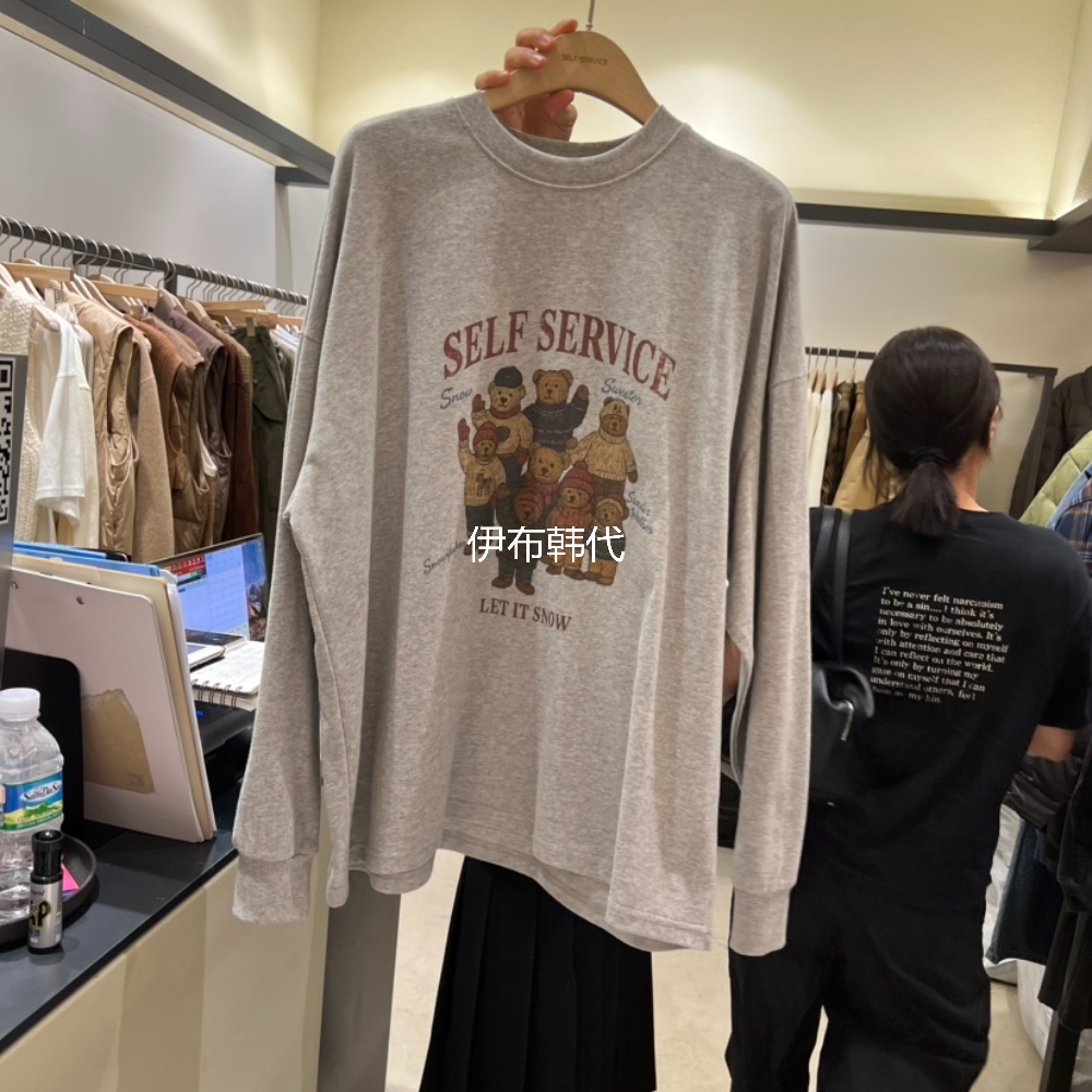 伊布 韩国东大门正品代购25冬款 圆领休闲卡通小熊宽松长袖T恤女