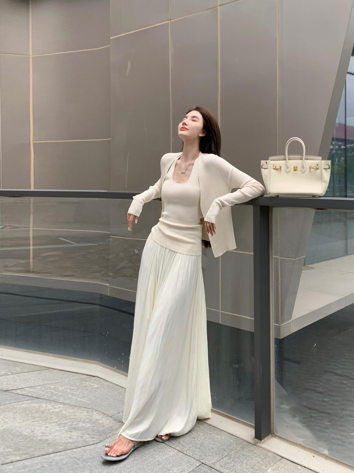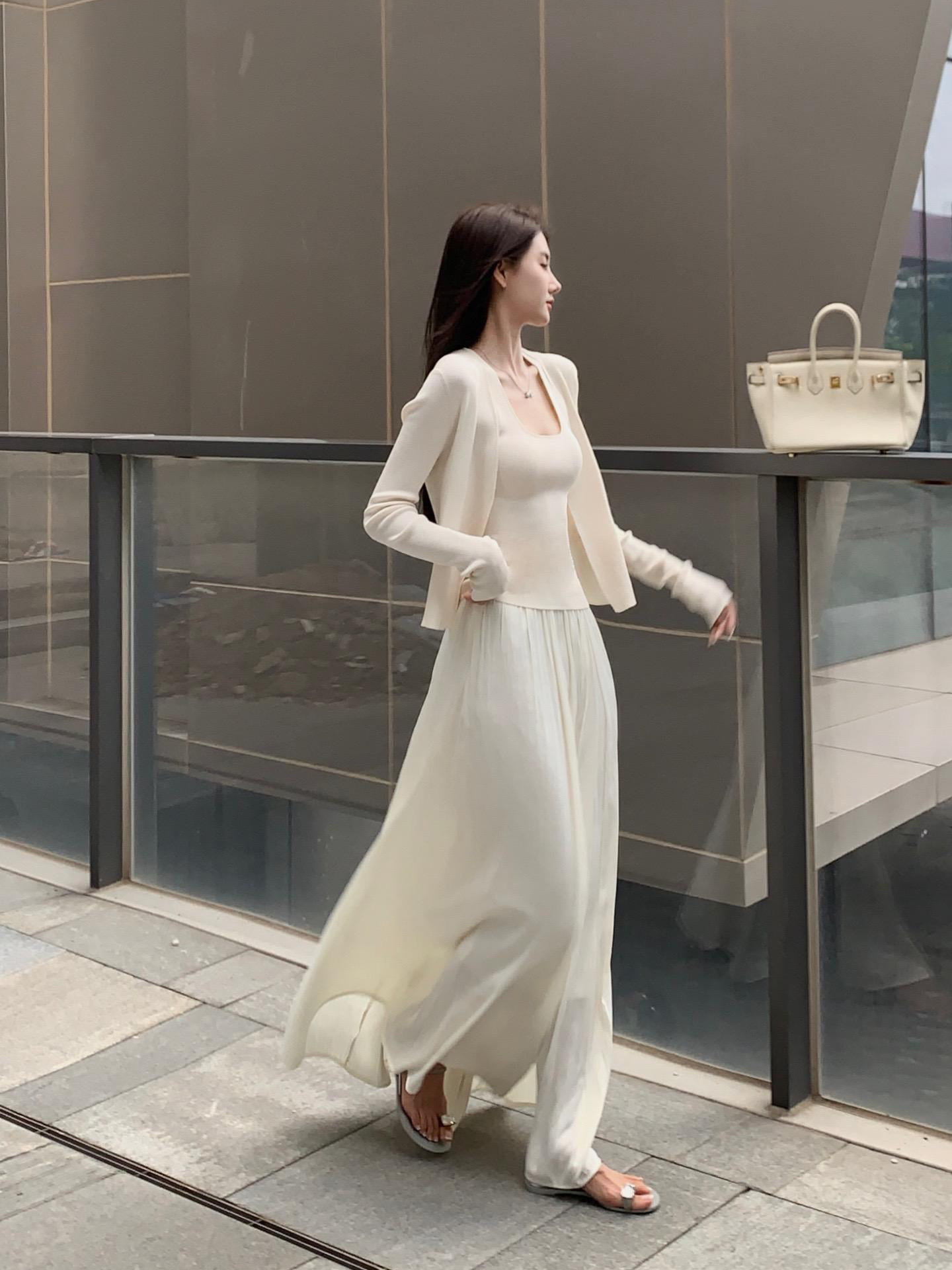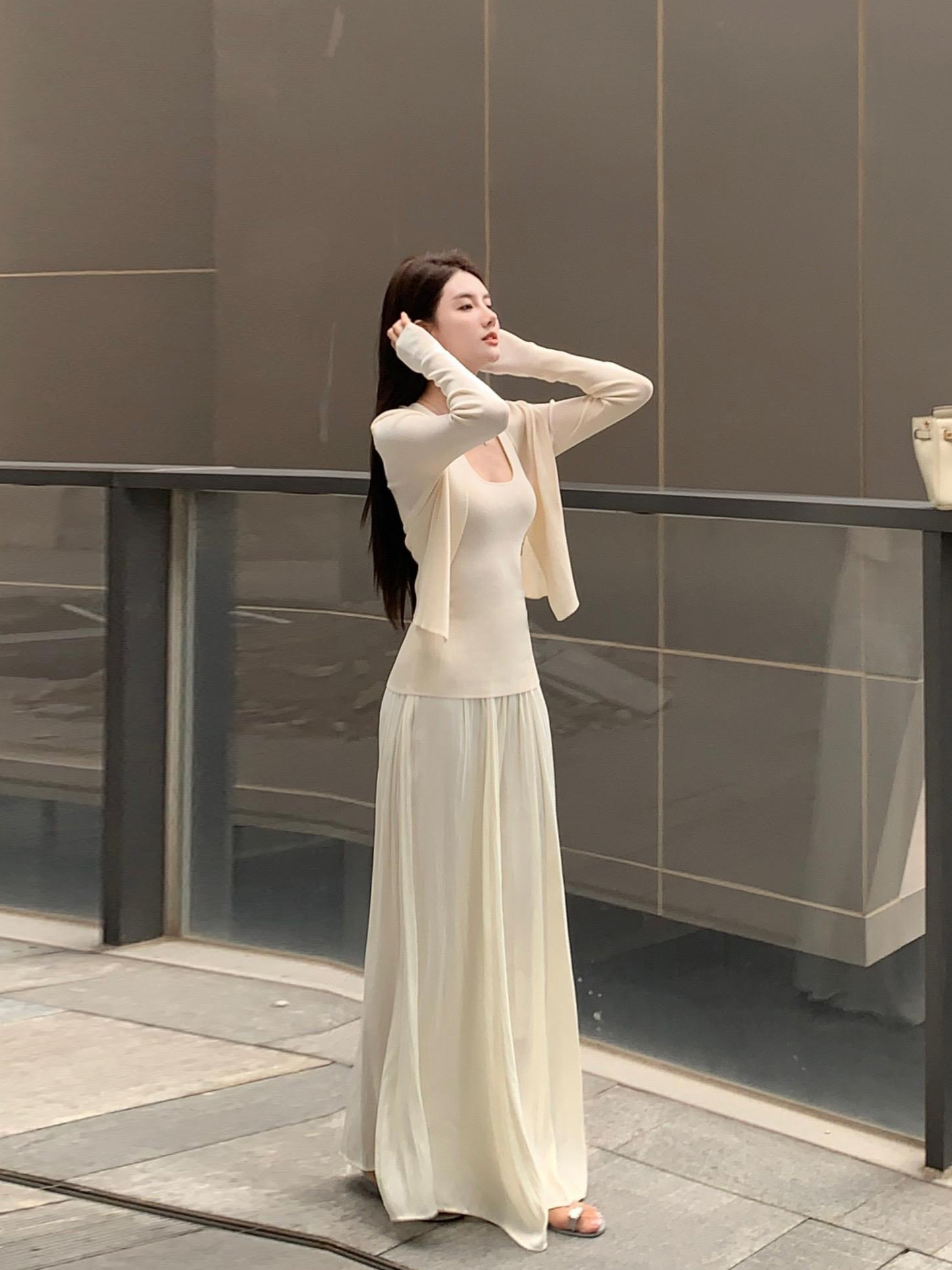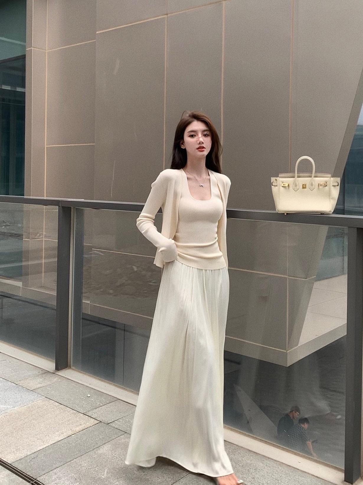 纯欲时尚套装裙挂脖V领针织背心防晒开衫上衣两件套高腰半身长裙