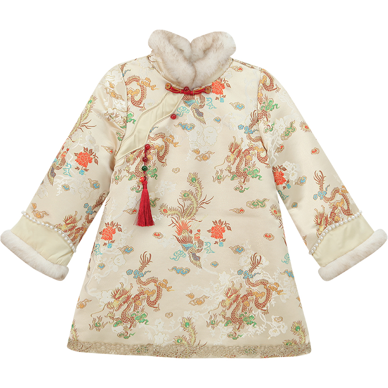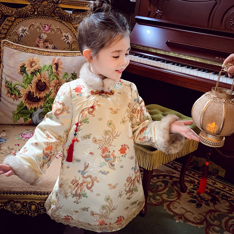 女童国风旗袍裙冬装2025新款儿童新中式夹棉汉服连衣裙女孩拜年服