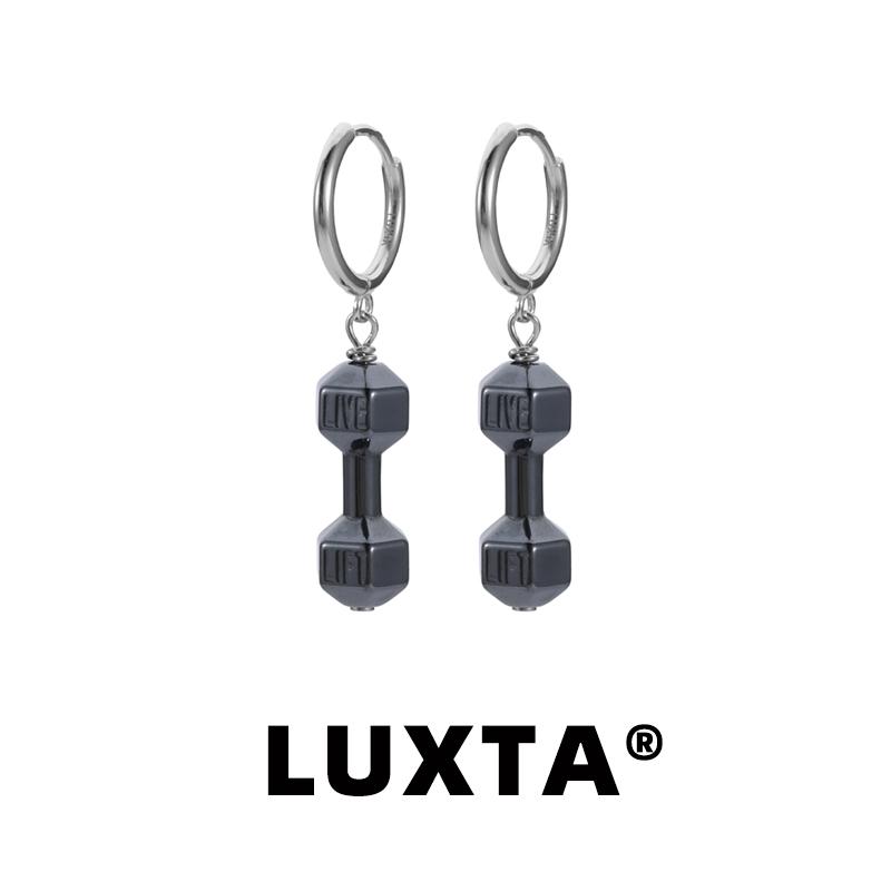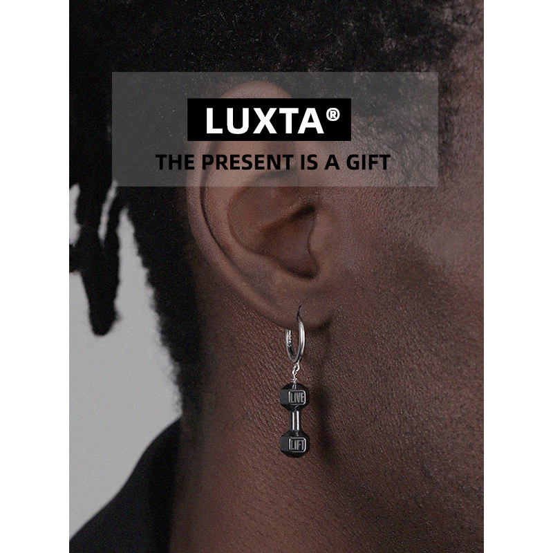 LUXTA原创 纯银哑铃耳坠嘻哈男 高级感耳饰黑胆石运动健身时尚潮