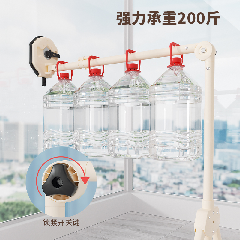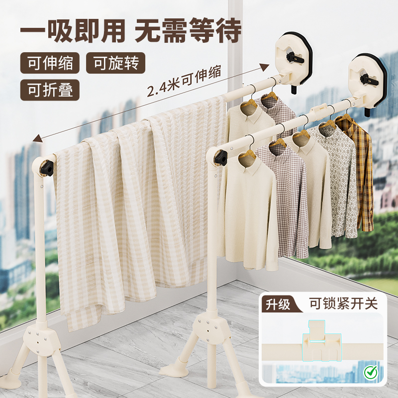 吸盘晾衣架折叠阳台伸缩晾衣杆落地强力玻璃晒被子神器室内多功能