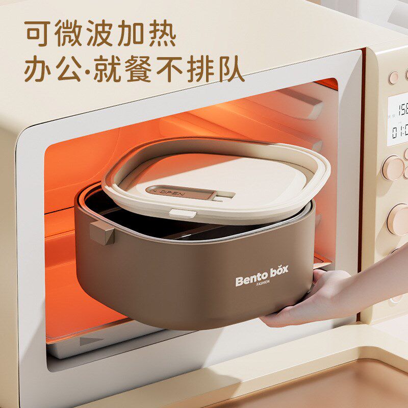 不锈钢日式便当盒双层分格可微波汤罐上班族学生便携保温饭盒