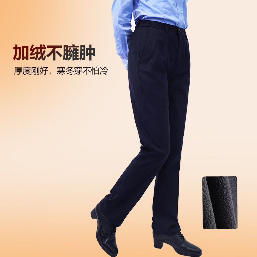 通勤裤女西裤冬季加绒保暖藏青色直筒垂感铁路银行工作职业制服裤