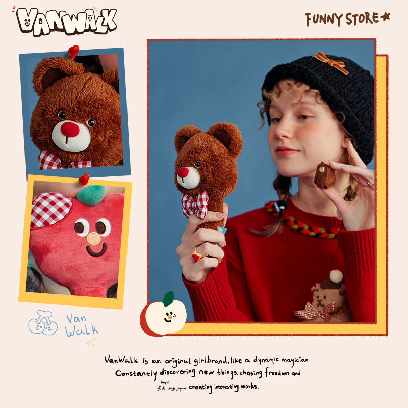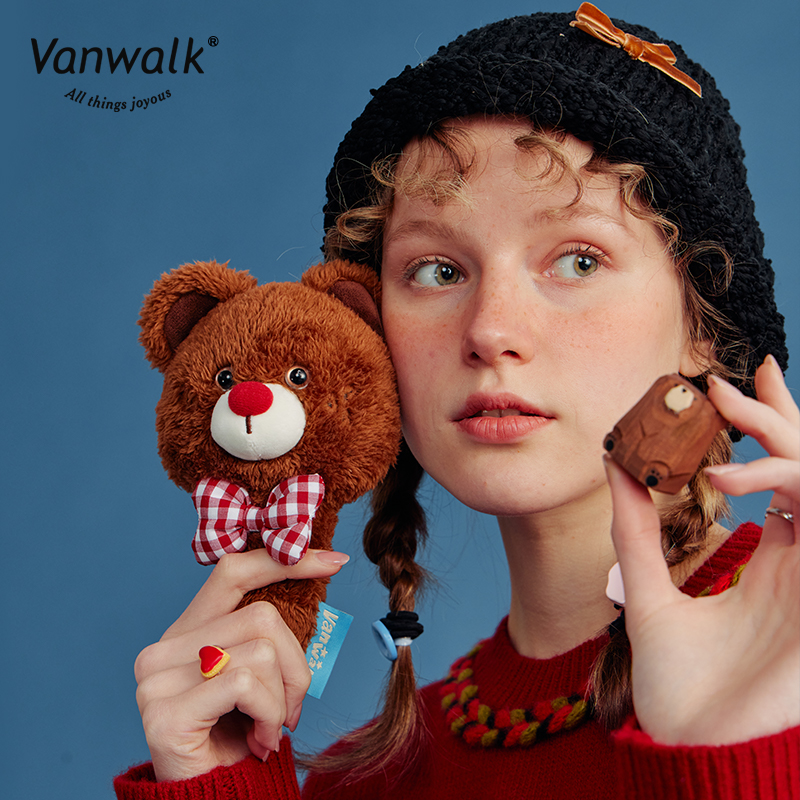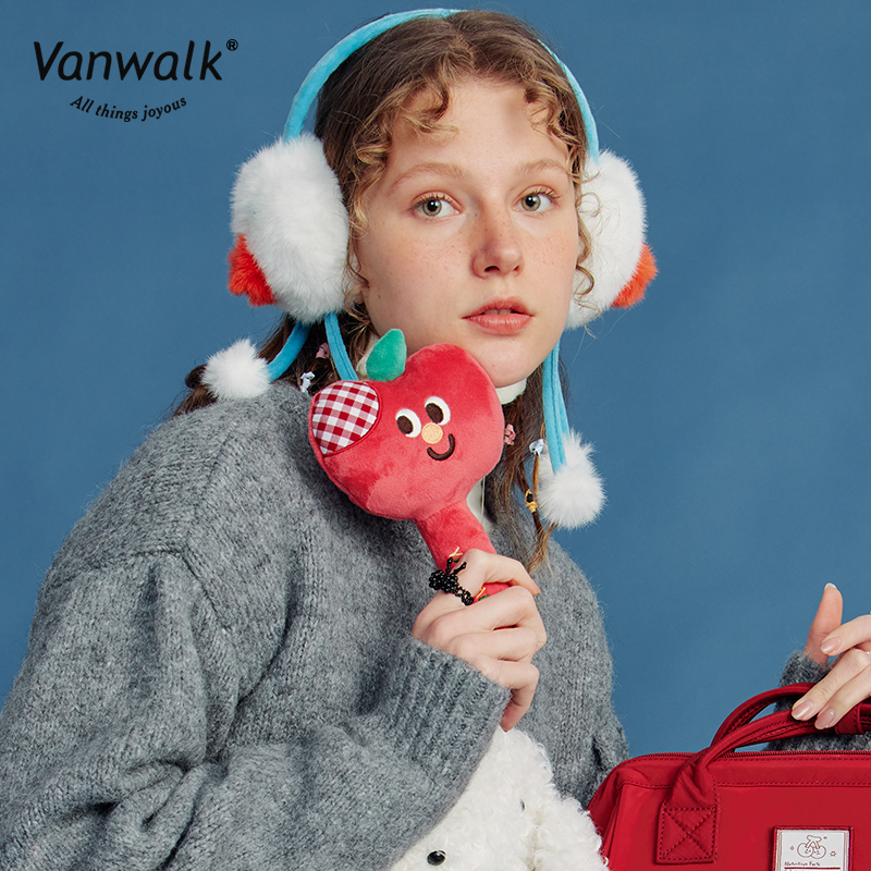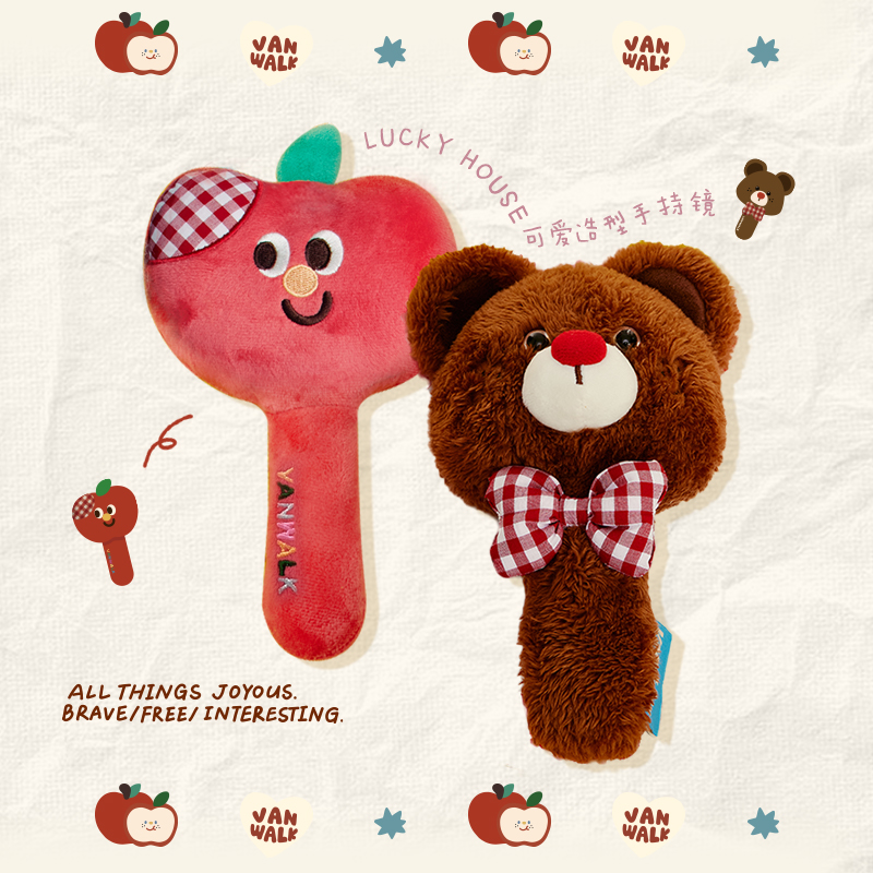 VANWALK lucky house 可爱卡通毛绒手持化妆镜随身便携补妆镜子